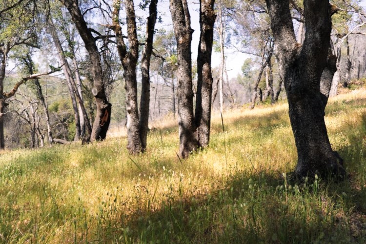Back on the ground near Forbestown and Hurleton roads, we see a nice shaded forest on a rather steep slope. The ground is clear– no thick underbrush or other ‘ladder fuels’ which could endanger the dozens of healthy trees within sight. As part of the ’35/45′ project, this entire area has recently been masticated; a process that essentially uses a small chewing machine moves through underbrush, leaving medium and large trees alone. It’s a safer zone now, both for the thousands of trees and the hundreds of people who live nearby. Later on in the year, a herd of goats will graze the same area to finish the job.